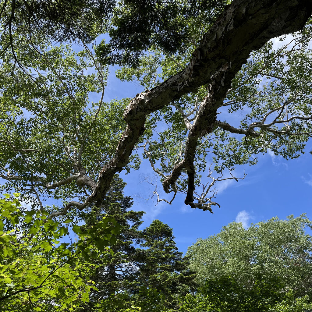 整備されて歩きやすい道が続く 緑の向こうに青空が素晴らしい